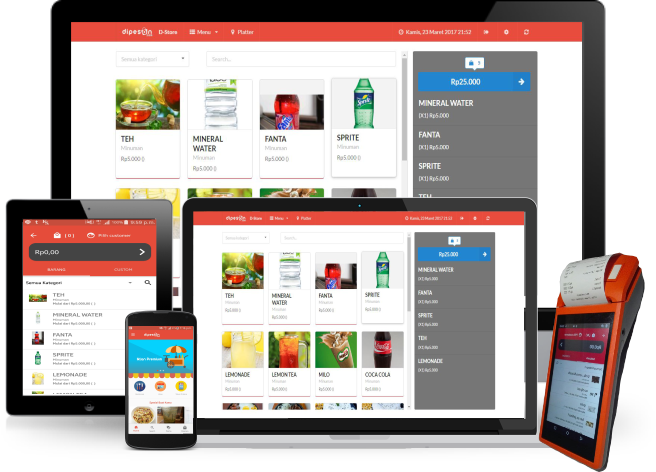 Dipesan.com sebagai marketplace didukung oleh aplikasi-aplikasi yang digunakan langsung oleh merchant untuk mengelola bisnisnya, kami sebut dengan nama d-App (bussiness solution), data transaksi di tempat merchant akan langsung terkoneksi dengan data yang ada di dipesan, sehingga bukan marketplace biasa yang kami berikan tetapi sebuah integrasi sistem manajemen bisnis perusahaan dengan fitur portal publikasi, transaksi walkin (offline) dan transaksi online.